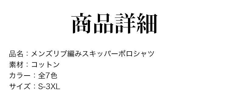 多様なシーンに対応するメンズリブ編みスキッパーポロシャツ