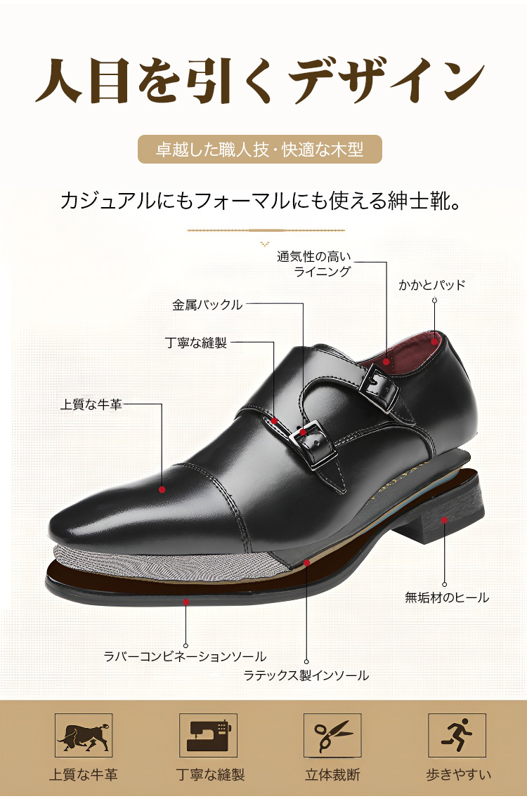 金属バックル付き紳士靴